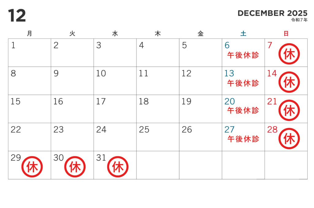 当院では下記日程を休診とさせていただきます。あらかじめご了承頂きます様、お願いいたします。