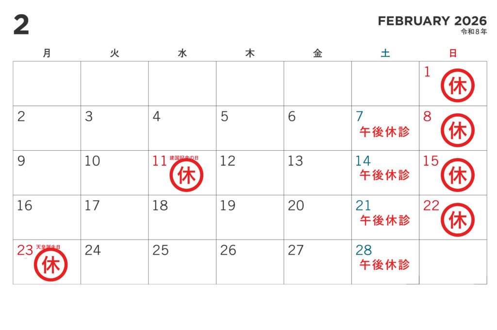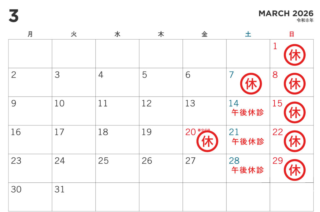 当院では下記日程を休診とさせていただきます。あらかじめご了承頂きます様、お願いいたします。